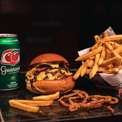 pão de batata, burger 180g, queijo brie, cebola caramelizada com mel, bacon crocante, maionese trufada da casa, rúcula orgânica, tonante cereja.