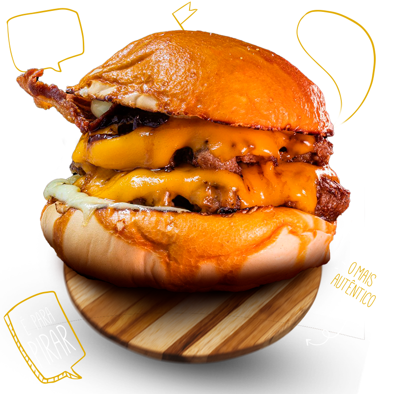 pão de batata, burger duplo 120g, queijo cheedar, cebola caramelizada, molho aioli da casa e bacon duplo crocante.